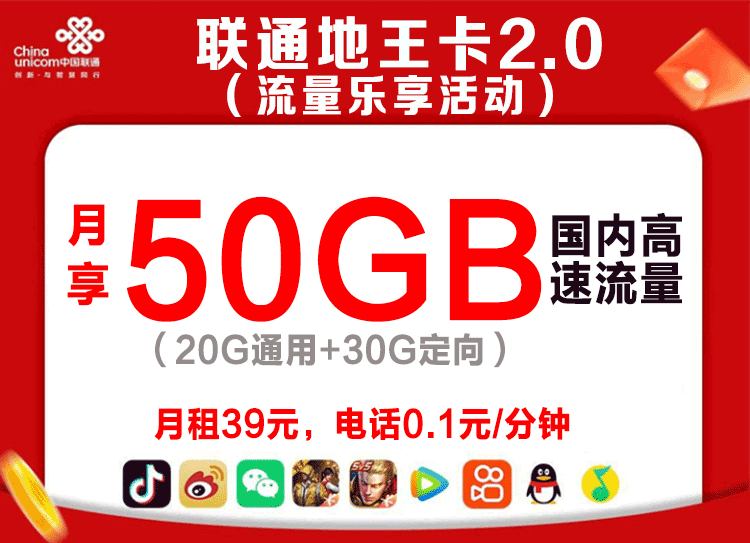 39元/50G,59元/月80G,电话0.1元/分钟,不停机活动可领取100分钟12个月